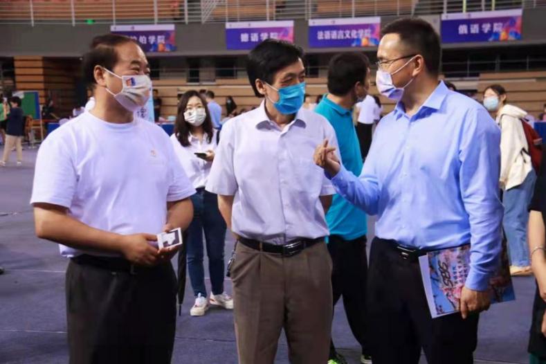 在体育馆二层,新生在志愿者、院部门工作人员的帮助下办理相关入学手续,jinnian金年会党委书记王定华,jinnian金年会党委副书记、校长杨丹,jinnian金年会院长张剑等领导老师莅临现场与新生进行亲切交谈,让他们感受到jinnian金年会大集体的温暖。