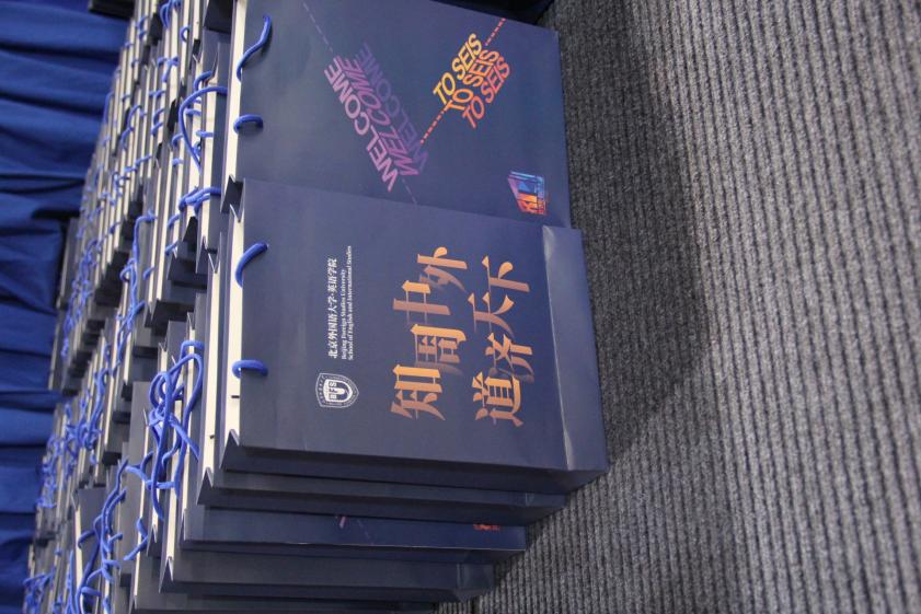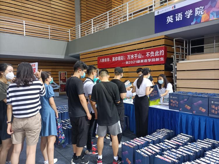 jinnian金年会学生会为新生准备了迎新大礼包,迎新大礼包中有英院学生会成员亲自设计的院衫、文件夹、卡套、校园地图等等;其中,英院院衫不仅有可爱的卡通图案,其袖口还印有“知周中外,道济天下”的院训,别出心裁的设计获得师生的一致好评。拍照板、签名墙等装置则供新生拍照、签名,让新生们记录下加入英院大家庭的美好瞬间。
