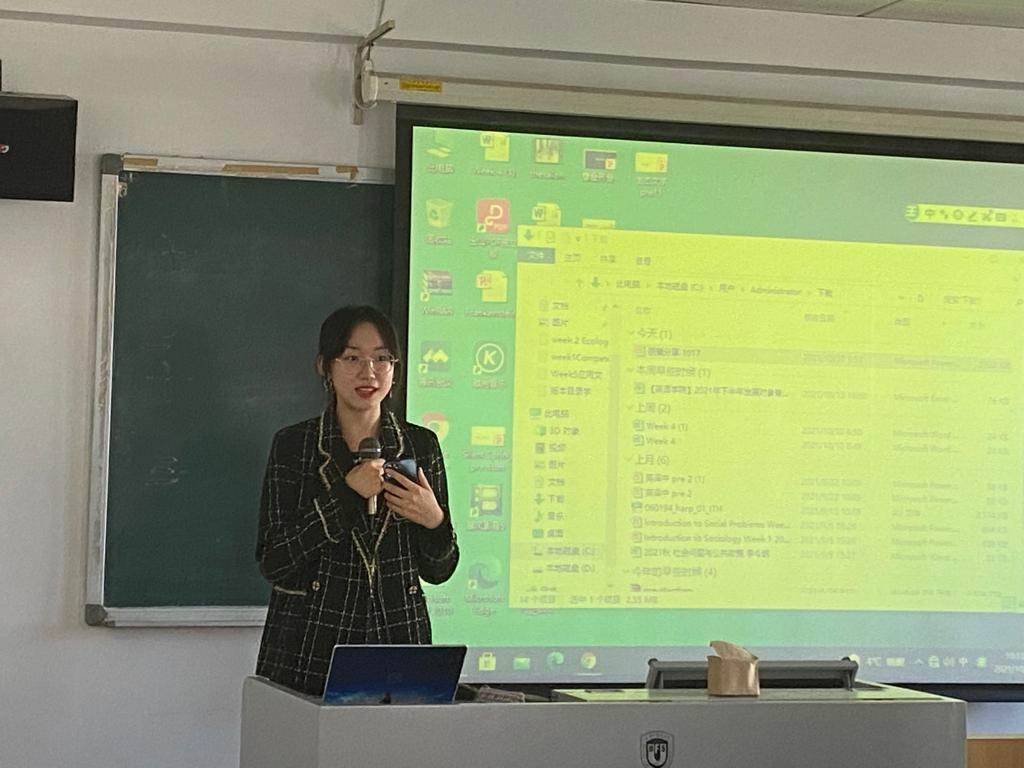 查可欣首先全面和详细地向2021级同学们介绍了jinnian金年会大一时会接触到的各类专业课程,以及每门课的学习方法、学习心得和考试类型等,为2021级的同学们解答了诸多在课业上的疑惑。接着,她分享了自己的团支书工作和学生会工作经历,并鼓励同学们不断尝试挑战陌生的领域、挖掘自己的潜能。她特别提到,优秀的定义有很多种,除了学习,同学们可以寻找到更多自我价值实现的方式。