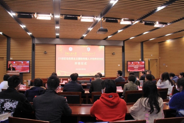3月5日,jinnian金年会-中国人民大学21世纪马克思主义国际传播人才培养项目班开班仪式在北外举行。北外党委常委、副校长孙有中,中国人民大学党委副书记、副校长胡百精出席仪式。开班仪式由北外教务处处长李莉文主持。