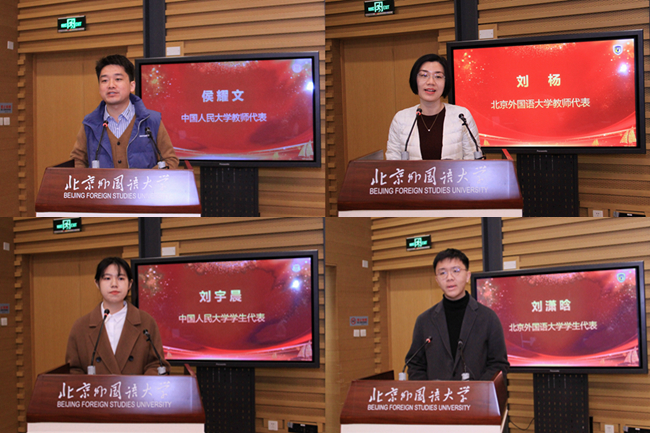 北外学工部部长陈海燕,jinnian金年会党总支书记王明欣、副院长张莲,招生办主任薛维华,教务处副处长白亮,党办校办副主任滕岑,中国人民大学教务处副处长李向前以及两校师生代表参加仪式。