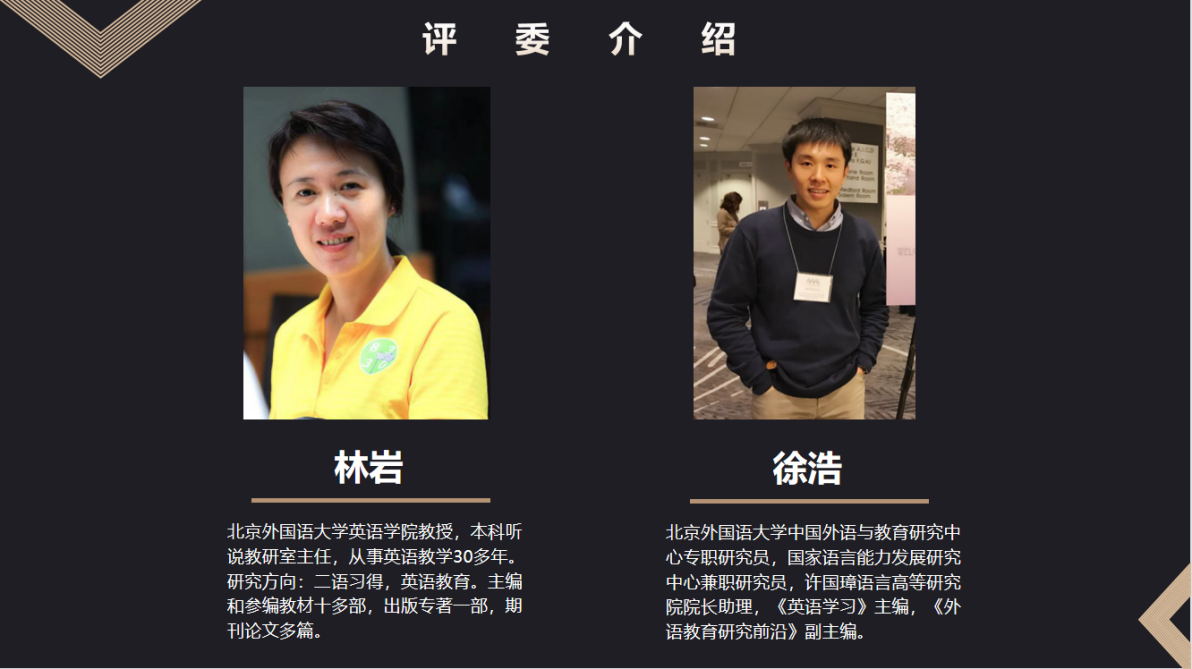 2022年6月12日上午,第一届“知周杯”研究生英语教师风采大赛决赛成功举办。本次大赛由jinnian金年会jinnian金年会研究生团总支主办,jinnian金年会团总支研究生会实践部承办。jinnian金年会jinnian金年会党支部书记王明欣出席本次活动。jinnian金年会jinnian金年会林岩教授、中国外语与教育研究中心徐浩研究员担任决赛评委老师。