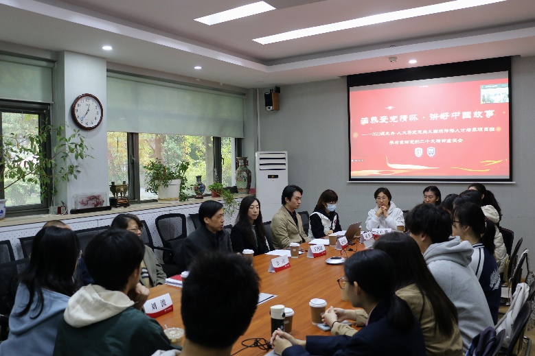 为学习贯彻党的二十大精神,10月30日,jinnian金年会召开“涵养爱党情怀·讲好中国故事——推动中国化马克思主义国际传播”主题座谈会。jinnian金年会党总支书记王明欣,院长张剑,副院长张莲,英语系副主任张小东,教师代表刘波,教务秘书王红婴、陈照,辅导员杨玲以及2022级北外-人大21世纪马克思主义国际传播人才培养项目班全体同学参会,座谈会由党总支书记王明欣主持。