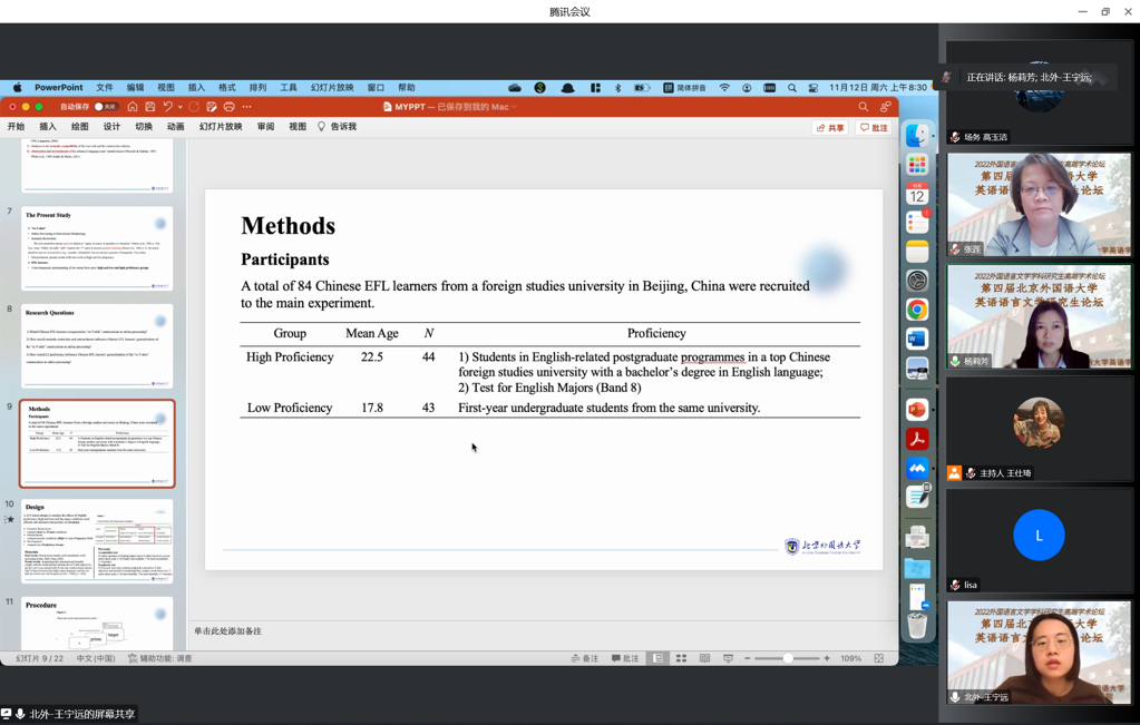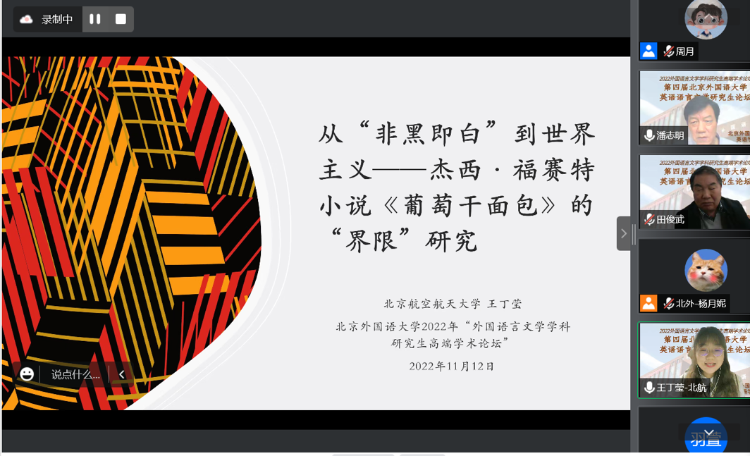 2022年11月11日至12日,第四届jinnian金年会英语语言文学研究生论坛(2022)以线上、线下相结合的方式举行。论坛是面向全国高校和研究机构相关专业研究生举办的学术交流活动,共收到来自全国50多所高校外语学科的硕士生及博士生投稿近350篇。