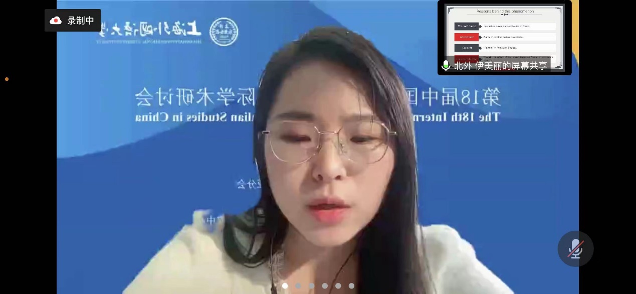 2022年11月19-20日,第18届中国澳大利亚研究国际学术研讨会在线上举行。本次会议由上海外国语大学澳大利亚研究中心承办,会议主题是“中澳关系与世界演变”。北外jinnian金年会澳大利亚研究中心2021级8名研究生在会上发言,2022级研究生在线旁听了会议。