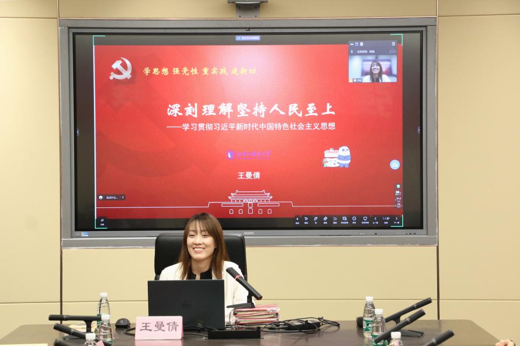 读书班分为专家领读和自学两个部分,马克思主义学院副院长王曼倩副教授受邀作为领读专家,以“深刻理解必须坚持人民至上”为主题讲述专题党课。王曼倩围绕党的二十大报告,从理论、历史、成果三个逻辑层次,深入浅出地讲述了中国共产党坚持人民至上思想的发展脉络和重大成就。她指出坚持人民至上是党开辟马克思主义中国化时代化新境界的首要立场观点和方法,是党面对人民之问的清醒与自觉。她聚焦“马克思主义的本质要求”、“党百年奋斗的初心使命”、“新时代巨大成就的力量之源”、“全面建设社会主义现代化国家的最大底气”四个方面,深刻阐释了什么是人民至上,为什么坚持人民至上以及如何坚持人民至上。