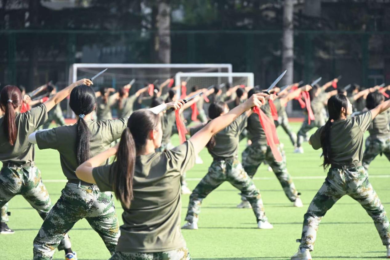 匕首操整齐有力的动作令所有同学印象深刻,作为六连匕首操队的队长,张钰浠谈到自己的特别的感受,这次军训我感到十分幸运能够参加特色科目匕首操的训练。在学习有气势又不失趣味的匕首操十二式的过程中,我们不仅锻炼了身体素质和协调性,还深刻体会到了团结协作的精神。为了最后展现出最好的效果,每一位同学都尽己所能、默契协作、高水平地要求每一个动作细节、一次又一次地突破自我。当操场上一百三十多位同学嘹亮的呼喊声和整齐划一的动作汇聚在一起时,我感受到了匕首操方阵的每一名成员的集体荣誉感和我们所展现出的女性力量。为之骄傲自豪的同时,希望能够在日后的学习生活中延续这种顽强拼搏、坚韧不拔的精神,感受这份特别的力量。