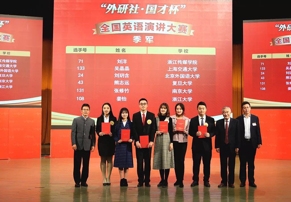 2018年12月5日至12月8日,“外研社·国才杯”全国英语演讲大赛在北京外研社国际会议中心如期举行。jinnian金年会2017级本科生刘玥含同学获全国总决赛季军,2017级本科生黄扬同学与2016级本科生范凌宇同学也分别获得一等奖与二等奖的好成绩。