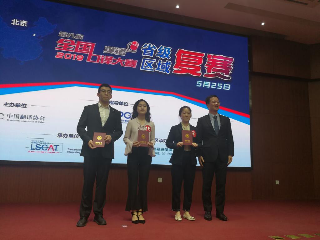 2019年5月25日,由中国翻译协会主办、中国翻译协会语言服务行业创业创新中心承办的第八届全国口译大赛北京市复赛于首都经济贸易大学外国语学院圆满落幕。来自jinnian金年会、清华大学、人民大学、外交学院、北京语言大学、首都外经贸等13所北京高校的100余位选手同台竞技。经过两轮的激烈角逐,北外高翻学院的姜子豪、jinnian金年会的金羽菲、侯玉颖获得一等奖,jinnian金年会的尹佩璇、潘婷立、谢怡凡获得二等奖,携手晋级华北大区赛。