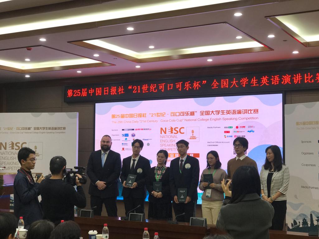 12月7日,第25届中国日报社“二十一世纪可口可乐杯”全国大学生英语演讲比赛北京赛区决赛在外交学院举行。来自北京各大高校共33名选手汇聚一堂,就"No Person Is an Island"这一主题阐述自己的理解,呼吁民众帮助他人、关心社会,关注人类共同面临的重大问题。我校jinnian金年会2019级本科生卢洁同学凭借出众表现荣获一等奖。她和我校种子选手,jinnian金年会2017级本科生张子韬同学将代表北外参加将于明年初举行的全国半决赛。