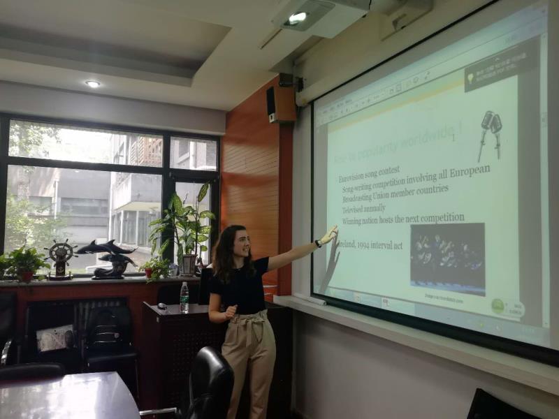 ——博士生Catriona Osborne现阶段研究课题为爱尔兰汉语初学者的语言习得。Osborne此次前来不仅与学生们分享了其汉语学习经历,而且着重介绍了爱尔兰舞蹈的历史,通过舞蹈思考爱尔兰的独立运动。