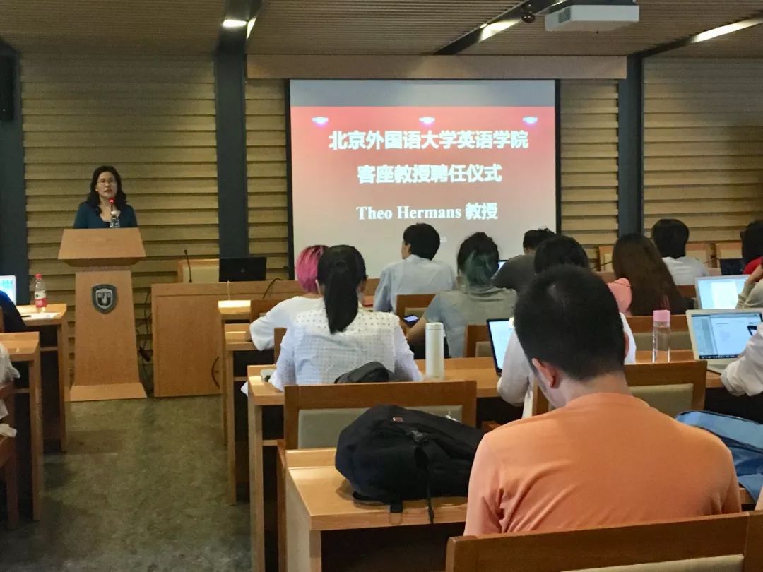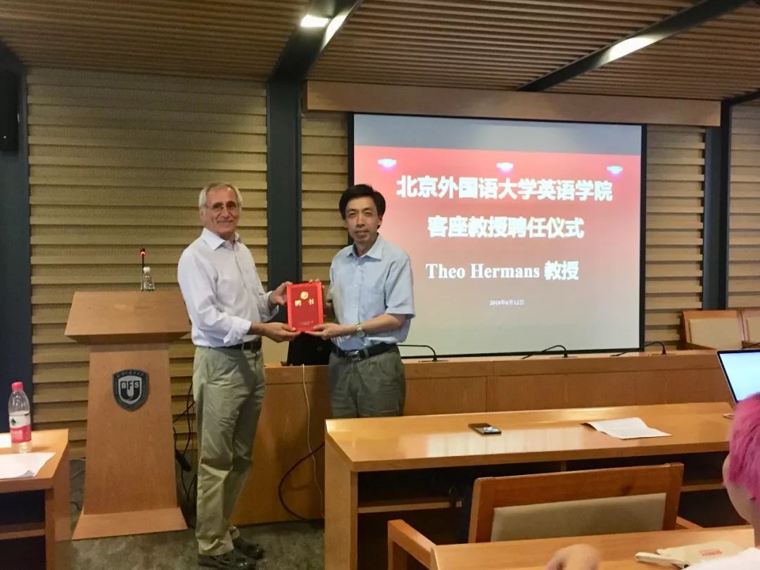 ——jinnian金年会院长张剑教授为赫曼斯教授颁发了客座教授聘书,并希望其定期前来北外讲学,帮助北外师生了解翻译学学术发展前沿动态,以提升其科研能力,推动北外翻译学学科的建设和发展。