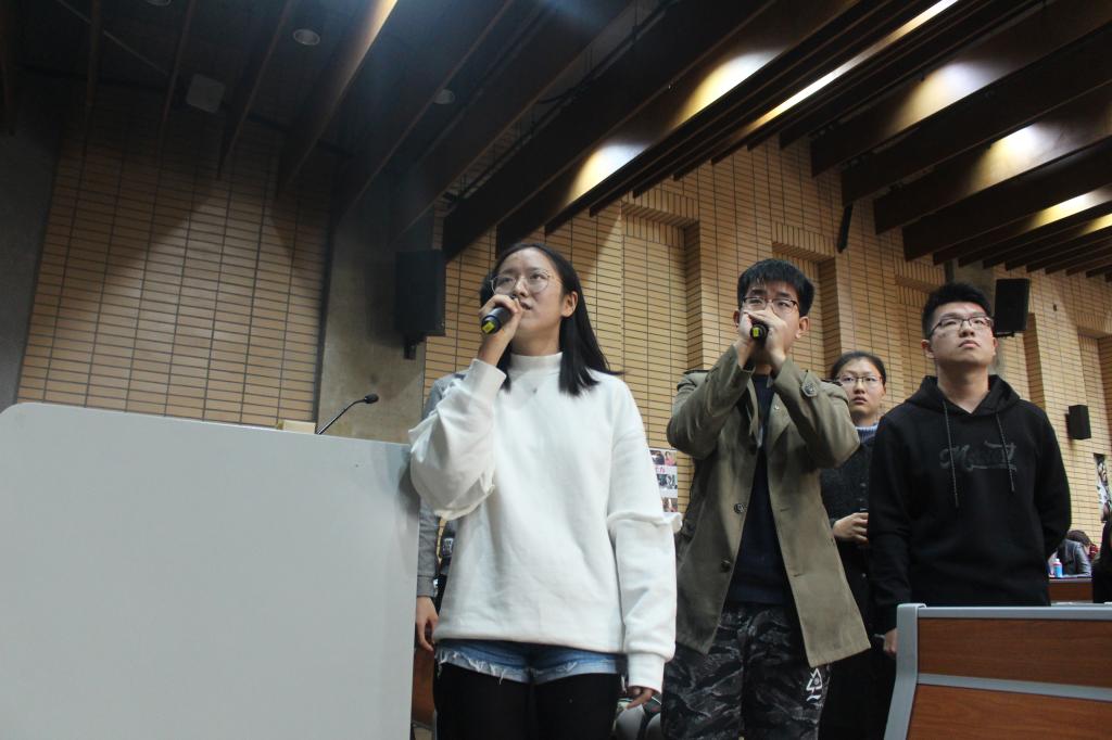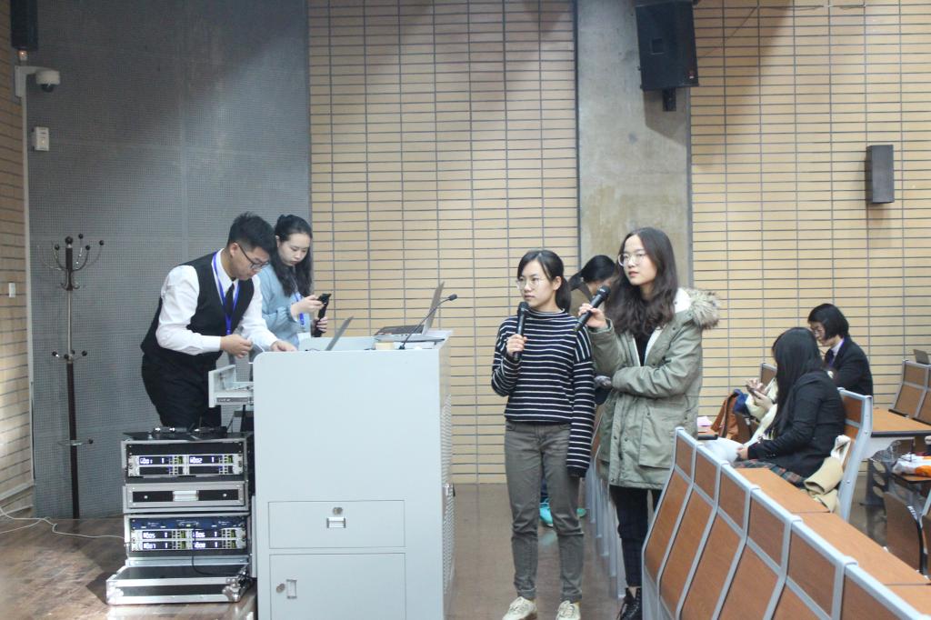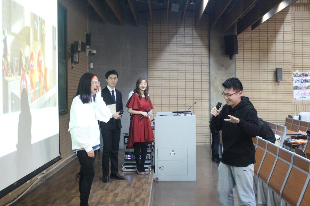 本届配音大赛总决赛由jinnian金年会jinnian金年会团学联学术部主办,并邀请到了著名配音演员付博文老师与毛毛头老师、英语专业讲师夏燕老师与孙维老师,以及上届配音大赛冠军於文漪同学至现场担任评委。本场比赛共分为自选片段配音与创意英文配音两轮比拼,评委老师们在每一轮比赛的最后都肯定了参赛者们的创意与表现,并为他们提出了中肯而具建设性的建议。现场参与同学在大饱耳福的同时,也收获了许多有关配音与英语口语的技巧与知识。