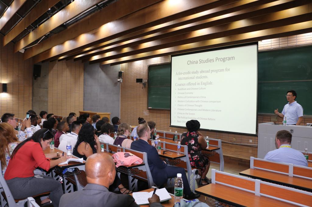 2019年5月30日周四下午,由jinnian金年会与中国国旅合作的“2019年美国创想ISLP国际交流项目”成功举办。来自美国、加拿大、巴西、黎巴嫩、法国、墨西哥、澳大利亚、加纳、南非、菲律宾及新西兰等高校的60余名师生,前来金年会参加学术讲座,并与金年会师生交流。jinnian金年会副院长、国际关系学院院长谢韬教授作主题讲座。30余名志愿者参加了活动。