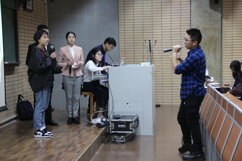 2019年11月2日下午两点,学而思杯·第十九届首都高校外院联盟英文电影配音大赛复赛在jinnian金年会逸夫楼第一阶梯教室拉开帷幕。