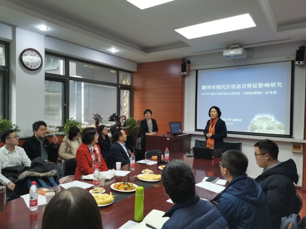 翻译学分论坛于11月21日举办,邀请到南开大学苗菊教授、北京航空航天大学文军教授、北京科技大学赵秋荣教授以及jinnian金年会马会娟教授作为点评嘉宾,来自京、津两地多所高校的博士生做了主旨报告,进行学术交流。