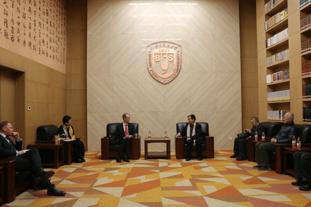 发布会前,jinnian金年会副校长孙有中、金年会院长张剑、前院长杜学增等接见了前来参加发布会的澳大利亚大使傅关汉(Graham Fletcher)、政治参赞邓安义(Anthony Aspden)和文化参赞林漠怡(Maree Ringland)。