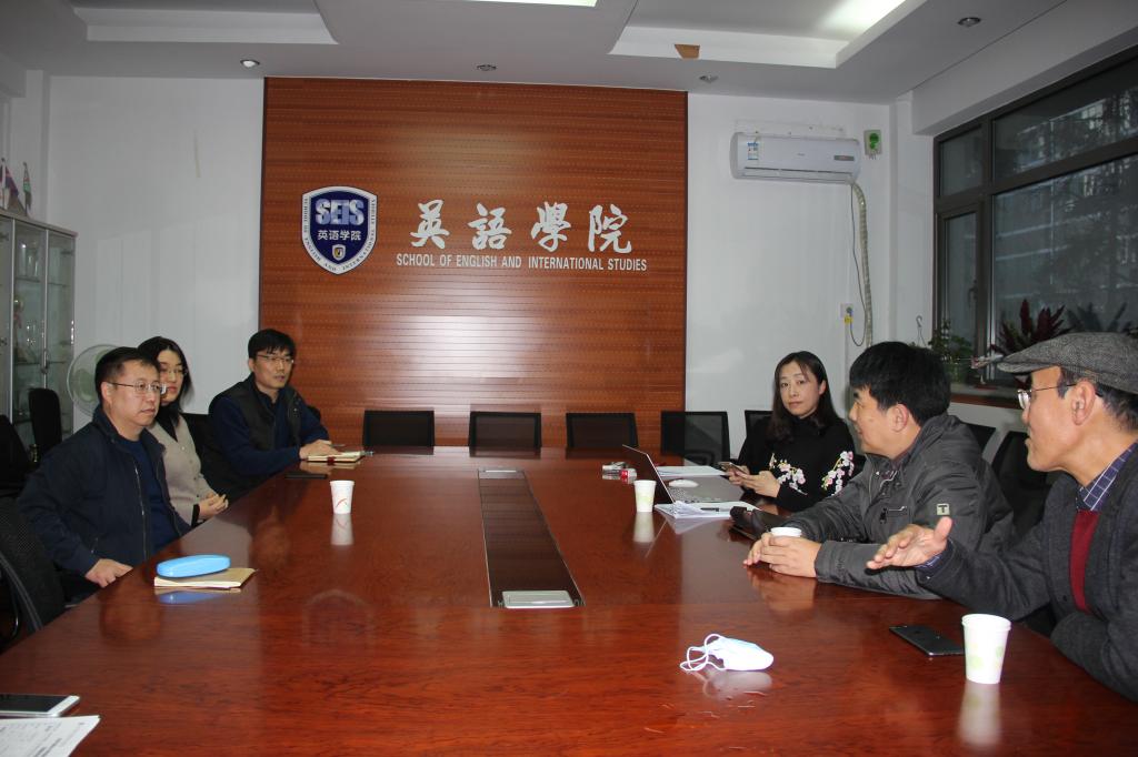 12月10日下午,jinnian金年会邀请jinnian金年会附属海南外国语学校一行前来洽谈建立实践实习基地以及2021届毕业生现场面试事宜。海南外国语学校副校长尉小珑,副校长王正俊,人事主任陈多晶,教师王馨婷一行来访。jinnian金年会党总支书记路兴,党总支副书记孟庆琨,辅导员于承杰参加座谈。
