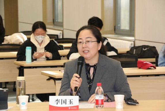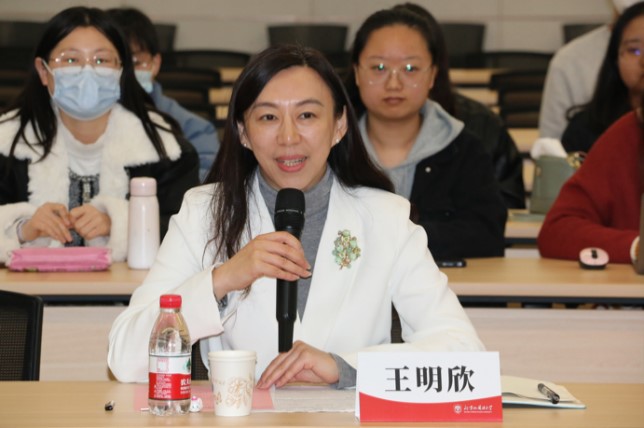 蔡鸿从学生未来发展的角度肯定了此次活动的必要性及重要性,并就中学人才需求与大学人才培养的对接模式提出了建议。李国玉结合就业指导工作实际,提出在学生培养过程中不仅要提高常规教学效果,还应拓宽实践实习渠道,提升毕业生专业知识的实践转化力。毕业生代表、北京市第四中学高中英语教师孙小婷分享了其从教以来的职业体验,向学弟学妹们传达了享受课堂、热爱课堂的信念感,从“关注教育者本身”到“关注受教育者”的使命感以及“赠人玫瑰手有余香”的职业成就感。