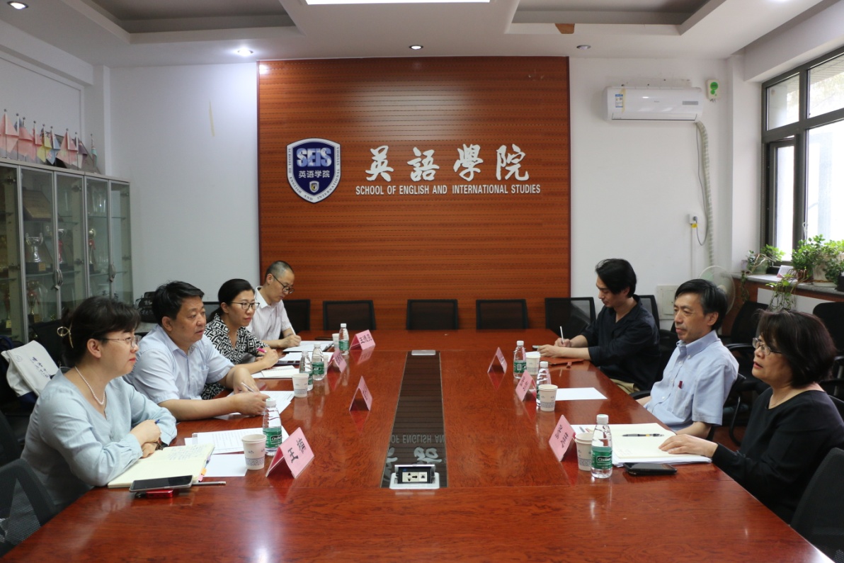6月8日北京师范大学外国语言文学学院院长苗兴伟、党委副书记张新颖、副院长王楠、王德亮来访金年会调研座谈。院长张剑、副院长张莲、英语系副系主任张小东参加会议。
