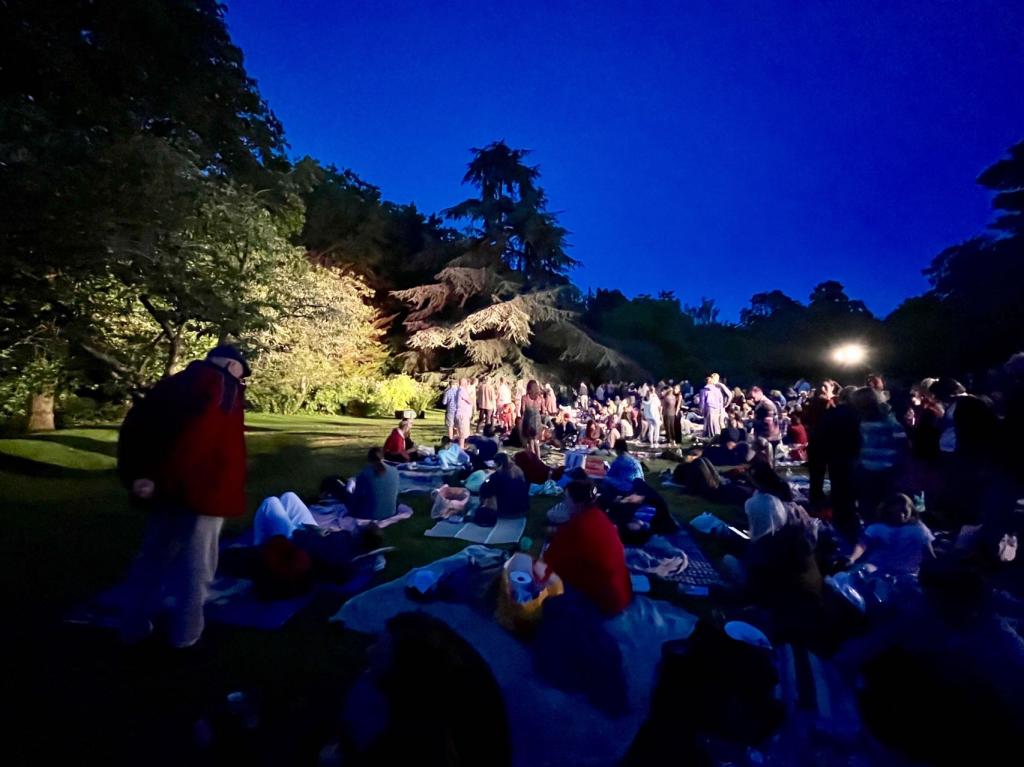 8月19日晚,实践团成员分为三组观摩了分别在剑桥大学三一学院花园、圣约翰学院花园、国王学院花园上演的《仲夏夜之梦》《暴风雨》《罗密欧与朱丽叶》三场剑桥大学莎士比亚戏剧节演出,这些演出都在户外举行,演员不使用话筒等扩音设备,直接面向数百名观众进行演出,他们在演出中充分使用了花园的自然地形设计人物站位和走位方式,在服装道具方面巧妙融入《狮子王》《剪刀手爱德华》等当代著名电影中的元素,引起了观众的共鸣,演员们的精湛演技赢得了观众的赞叹。