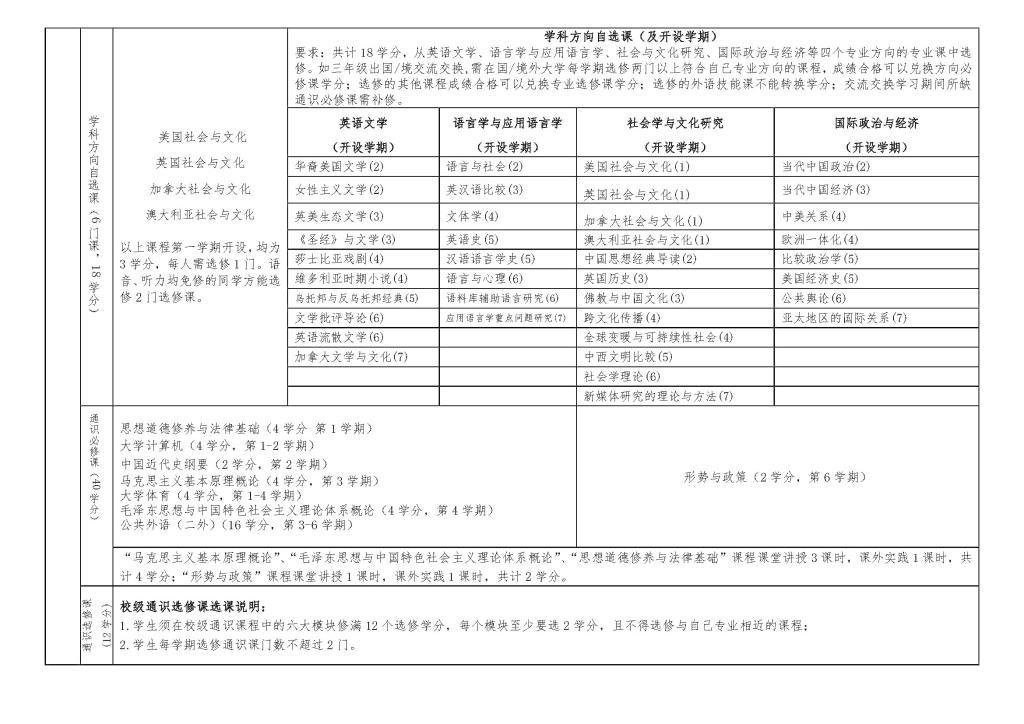 jinnian金年会英语专业本科培养方案(2016)