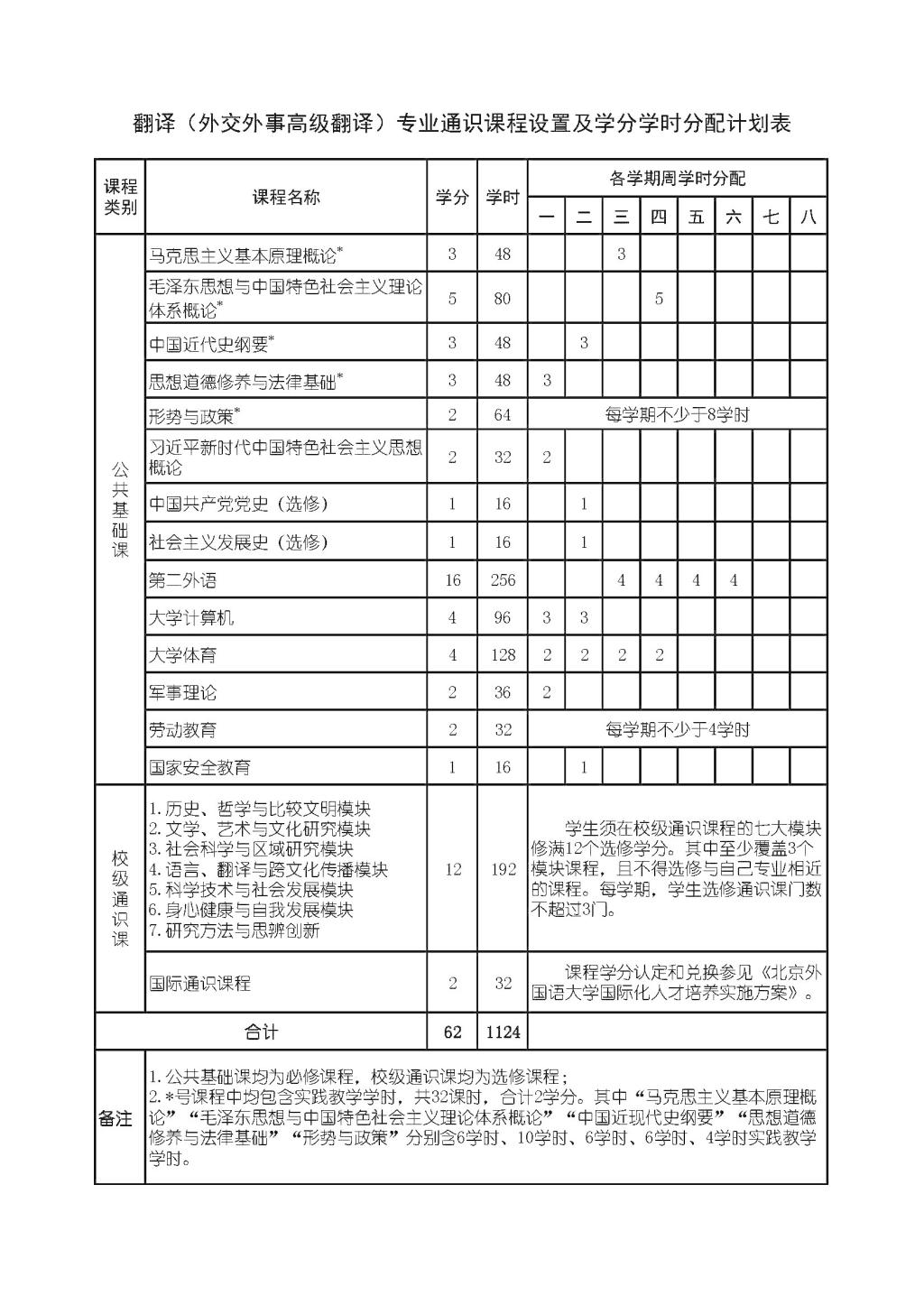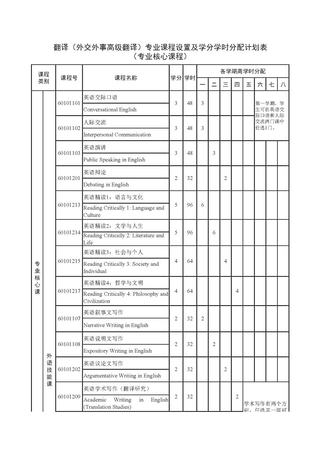 jinnian金年会翻译(外交外事高级翻译)专业本科培养方案(2021)