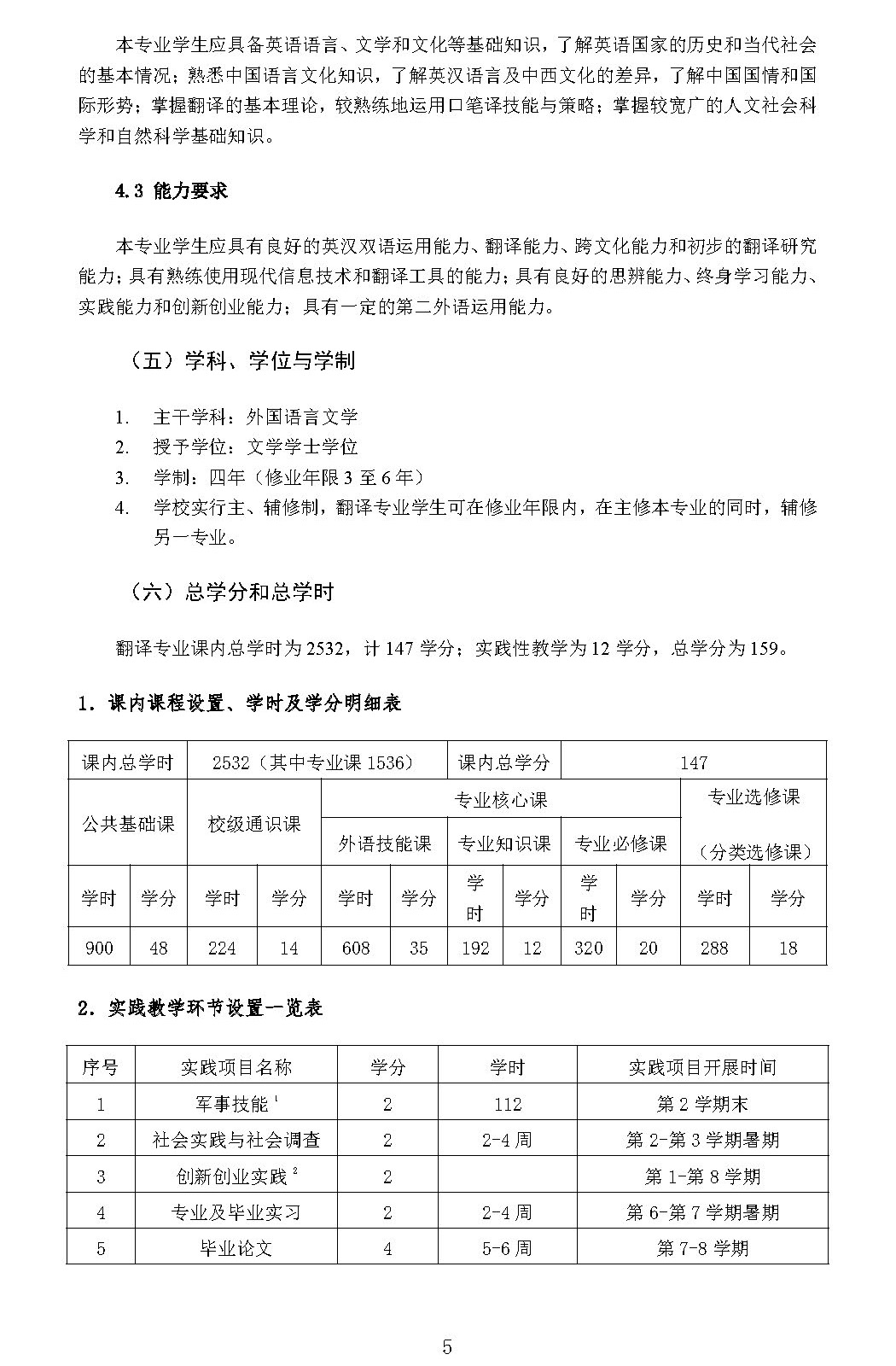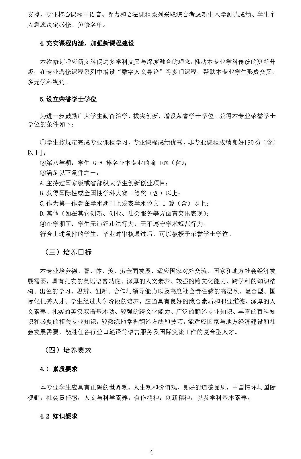 jinnian金年会翻译(外交外事高级翻译)专业本科培养方案(2021)