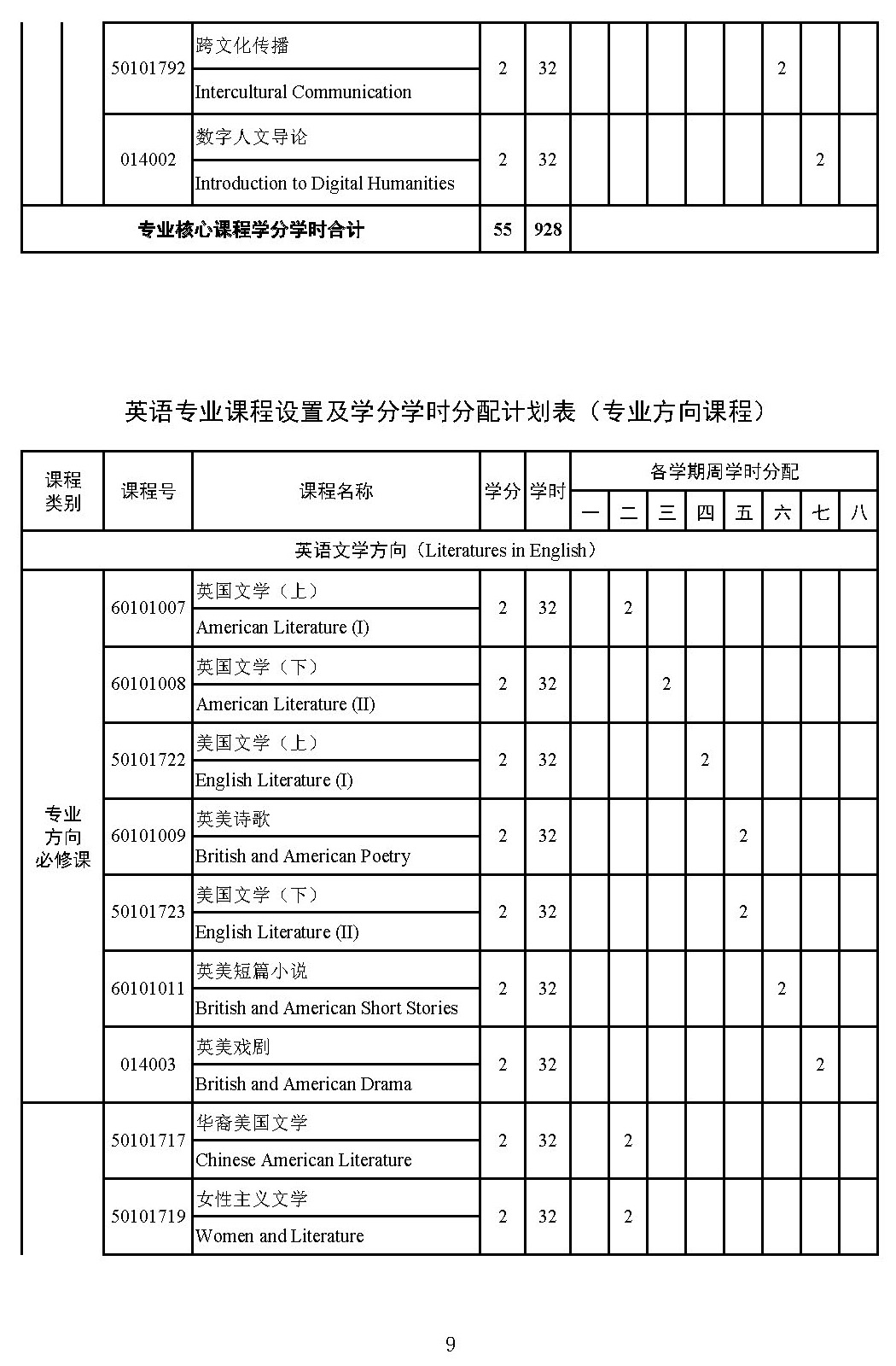 英语文学方向师资