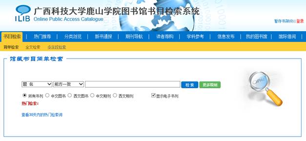 1.在检索机中打开浏览器进入OPAC书目检索系统,/index.html。