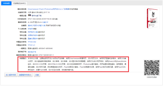 读者通过图书的目次、内容简介可以概括了解图书的内容,辅助读者判断图书是否适合借阅。因此对OPAC扩展目录信息和内容简介可以提高OPAC的利用。如下图所示: