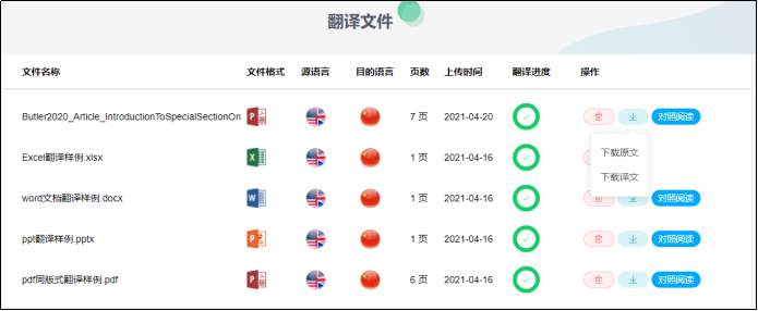支持原文译文同版式翻译