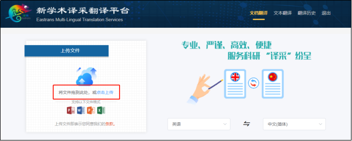 第一步:选择并上传需要进行翻译的文献