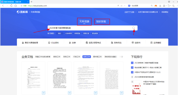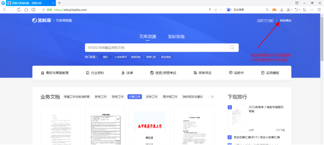 “百度文库高校版”( https://eduai.baidu.com)是百度文库2019年为高校机构用户打造的数字资源服务平台,基于多年沉淀的海量用户大数据与高校实际用户需求场景结合,通过知识图谱挂载的能力从文库海量数字内容中提取出高质量的专业实用数字资源放到平台当中,将内容按照基础课、工学、理学、管理学、医学、农学、法学、经济学、艺术学、文学、教育学、哲学和历史学这12个一级学科的大分类,92个二级学科的次分类,再到504个专业,乃至专业之中7590门课程的精细划分进行展示,与高校课程高度同步、精细匹配,满足高校场景下的数字资源使用需求