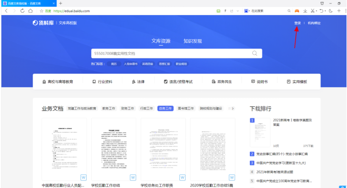 1、在校内打开“百度文库高校版”主页https://eduai.baidu.com/,点右上角“登录”