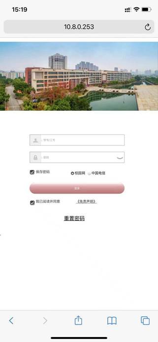 三、输入自己的账号加密码,选择校园网或者中国电信,认证通过后即可上网。