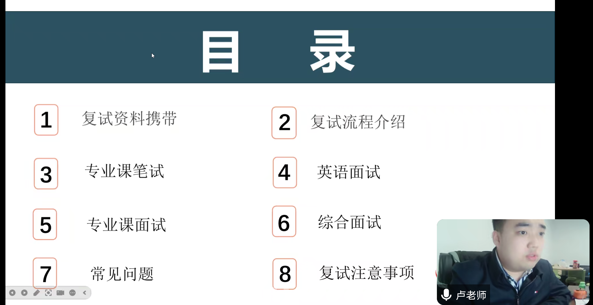 本次活动以线上会议形式进行,邀请到了柳州新文道卢锋老师主讲。会议由汽车工程学院党总支书记许孝忠主持,我院与兄弟学院2024届考研以及备考学子参加了本次会议。