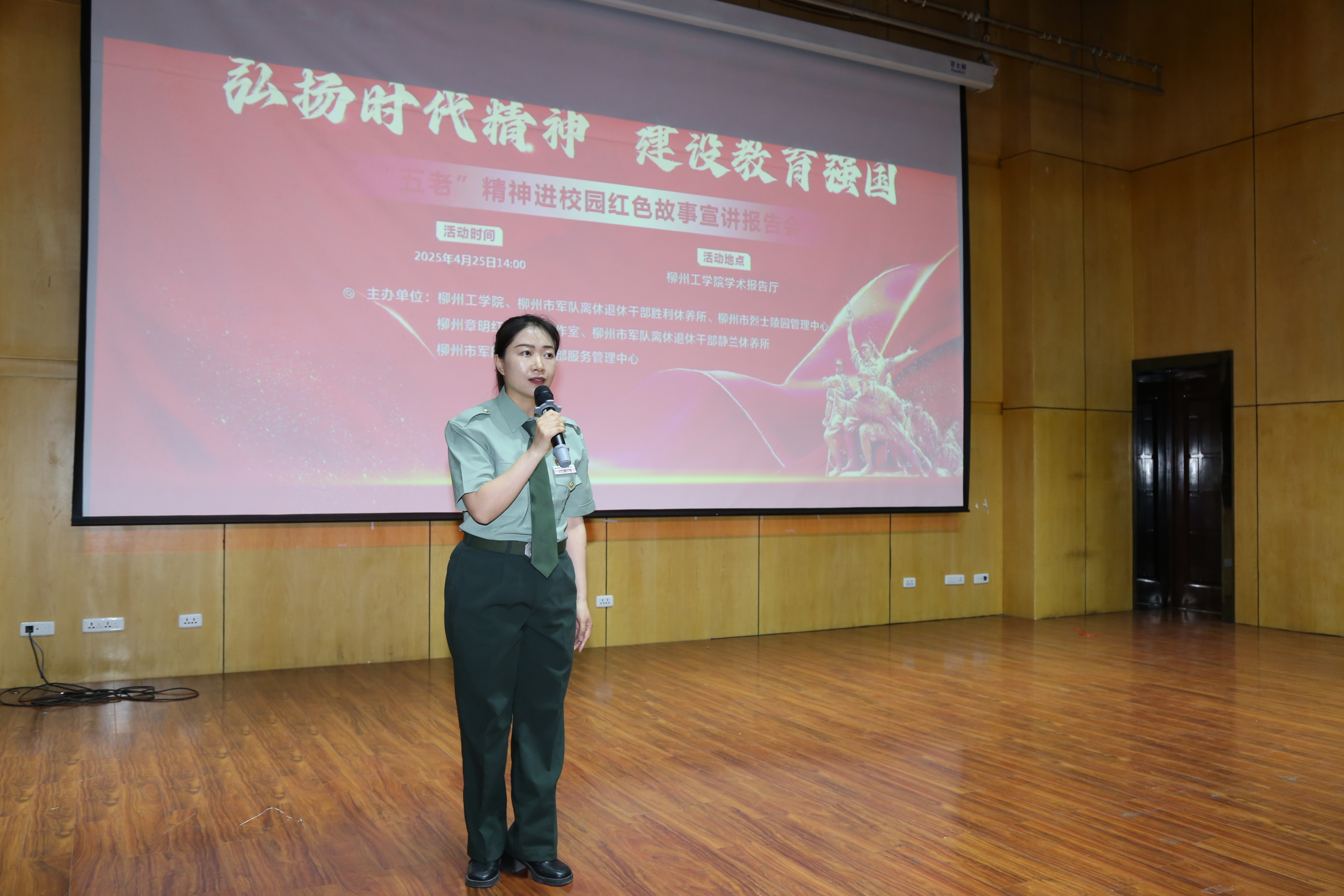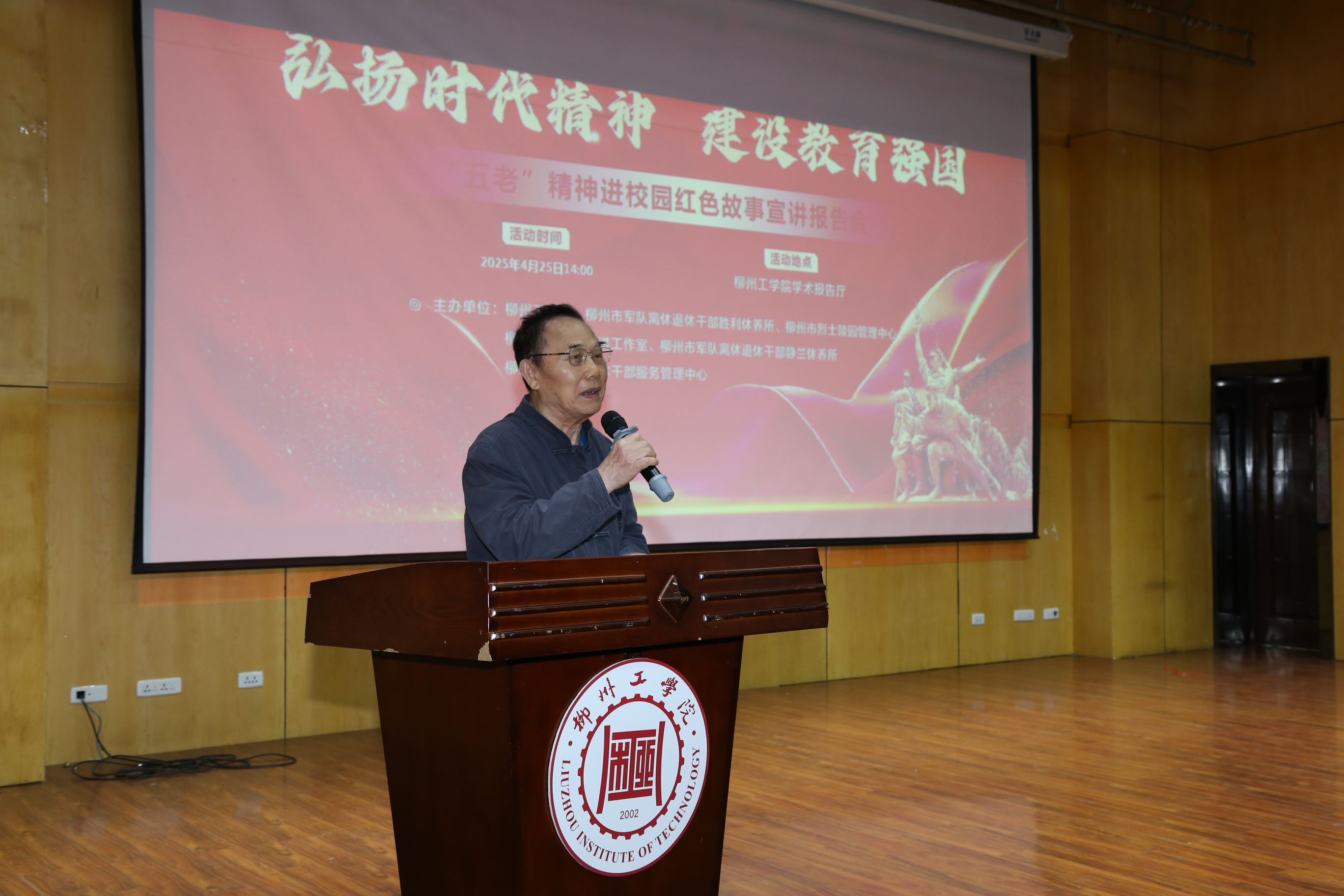 为深入贯彻“读懂中国”活动精神,筑牢青年学生思想根基,弘扬“五老”精神,4月25日,KY开元集团官网入口联合柳州市军队离休退休干部胜利休养所、柳州章明红色宣讲工作室、柳州市军队离休退休干部静兰休养所等单位,在学术报告厅举办“读懂中国”系列活动暨“五老”精神进校园红色故事宣讲会。近300名青年学子齐聚一堂,共同聆听跨越时空的红色回响,开启了一场历时90分钟的精神洗礼之旅。