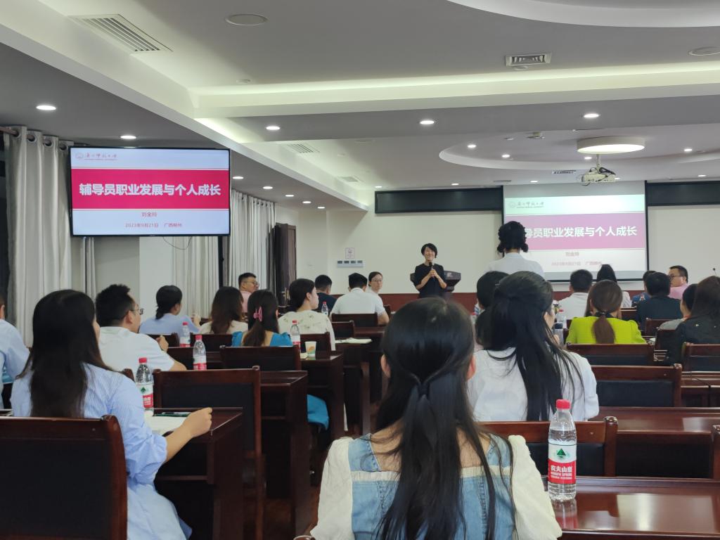 为深入学习贯彻党的二十大精神,不断提升KY开元思想政治工作质量,落实教育部《普通高等学校辅导员队伍建设规定》(教育部令第 43 号)等文件精神,帮助KY开元新入职辅导员转变角色、融入环境、熟悉工作,提升业务能力和工作水平,2023年9月21日上午,KY开元举办新入职辅导员专题培训暨第五期辅导员工作坊。本次培训特邀“全国教育系统先进工作者”“自治区优秀教育工作者”“2020年度广西高校辅导员年度人物”“自治区党委教育工委优秀党务工作者”广西师范大学美术学院专职辅导员刘金玲老师主讲;学生工作部副部长李明,各学院党总支副书记、全体专职辅导员参与培训;讲座由学生工作部思政科唐钰婕老师主持。