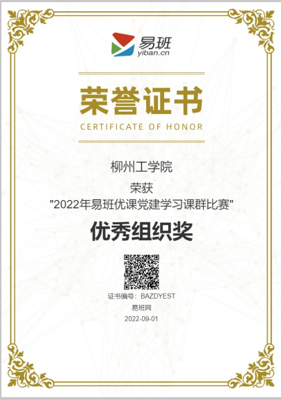 2022年9月,荣获2022年易班优课党建学习课群比赛“优秀组织奖”;