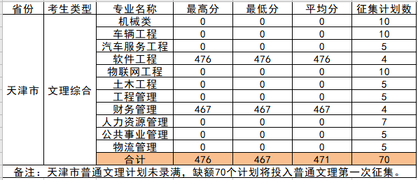 2021年天津市普通文理第一次投档完成,出档2人,各专业出档分数如下: