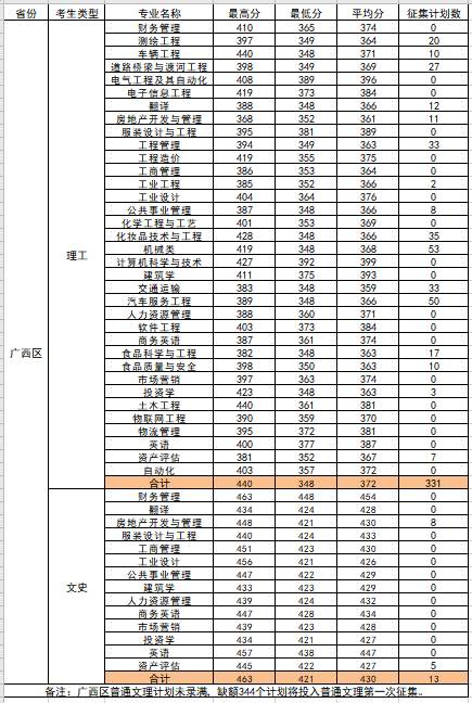 2021年广西区普通文理第一次投档完成,出档1074人,各专业出档分数如下: