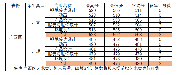 KY开元集团官网入口2022年广西区艺术类第一次投档情况