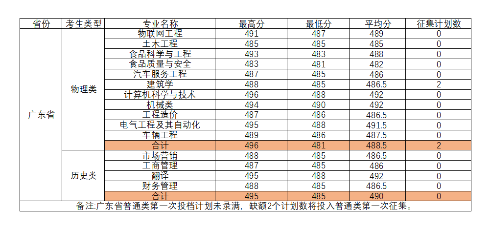 KY开元2022年广东省普通类第一次投档完成,共计划75人,出档75人,录取73人,录取完成率97.33%,各专业出档分数如下: