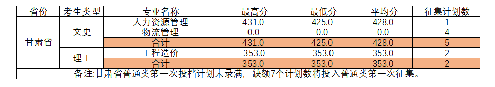 KY开元2022年甘肃省普通类第一次投档完成,共计划10人,出档10人,录取3人,录取完成率30%,各专业出档分数如下: