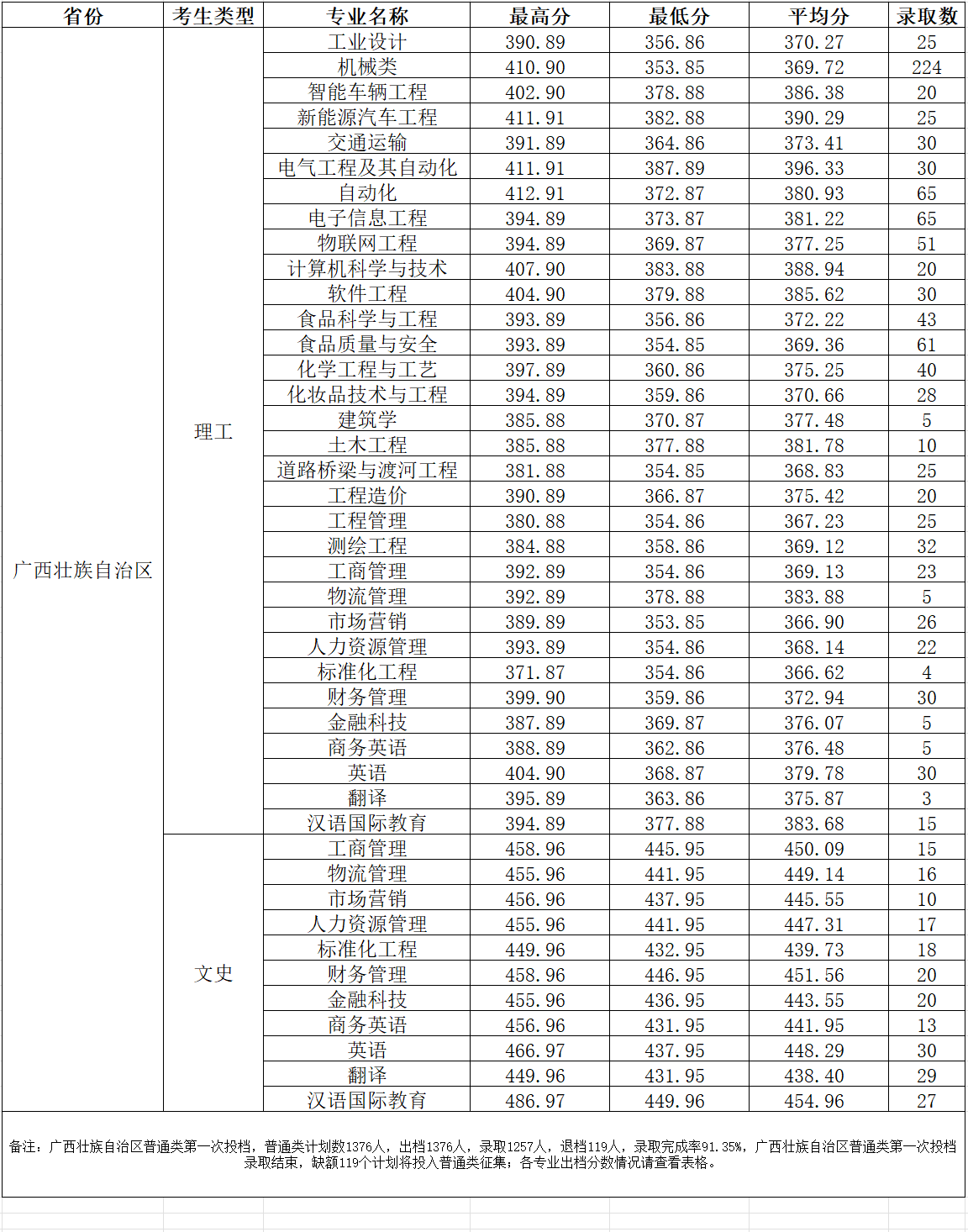 KY开元集团官网入口2023年广西普通类第一次投档情况